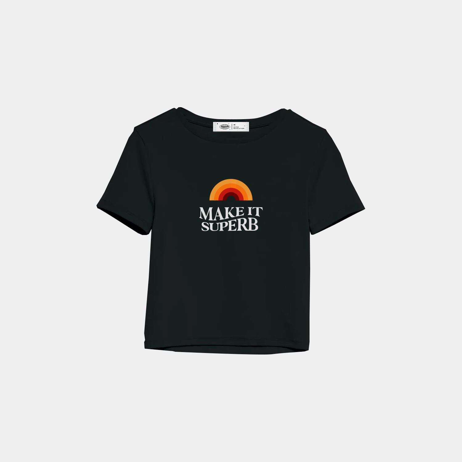 Whether you pair it with high-waisted jeans for a retro-chic look or wear it with a skirt or wide-legged pants for a more contemporary touch, this tee is the perfect complement to your unique style.
