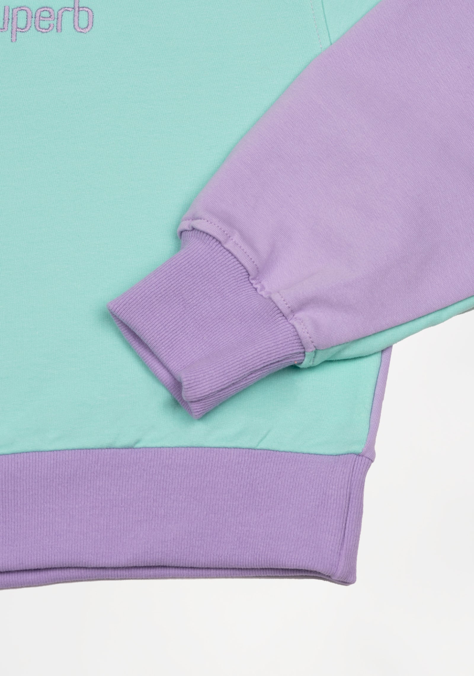 - Ribbed waistband and cuffs in contrasting pastel colors