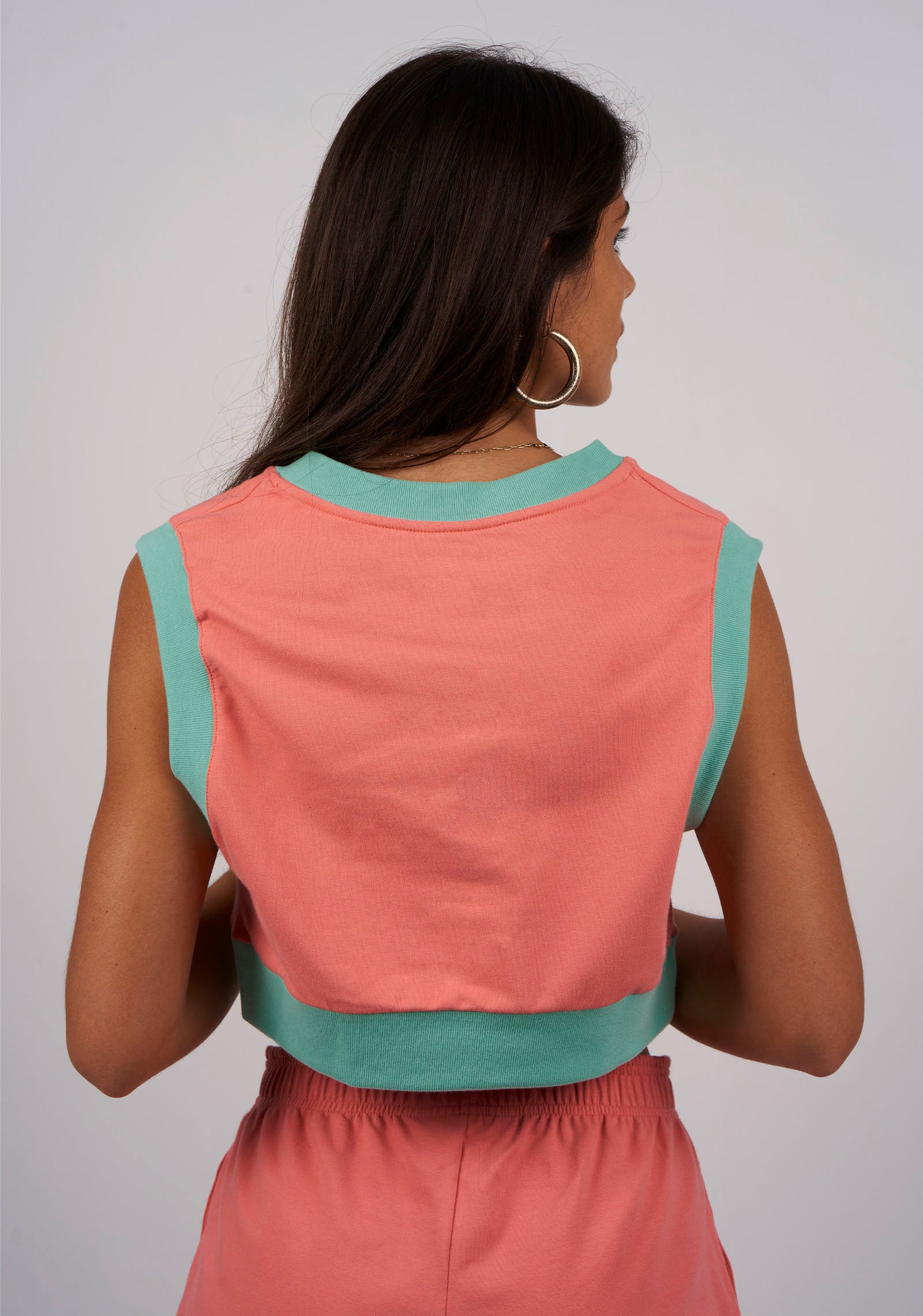 - Ribbed waist and shoulders in contrasting pastel colors