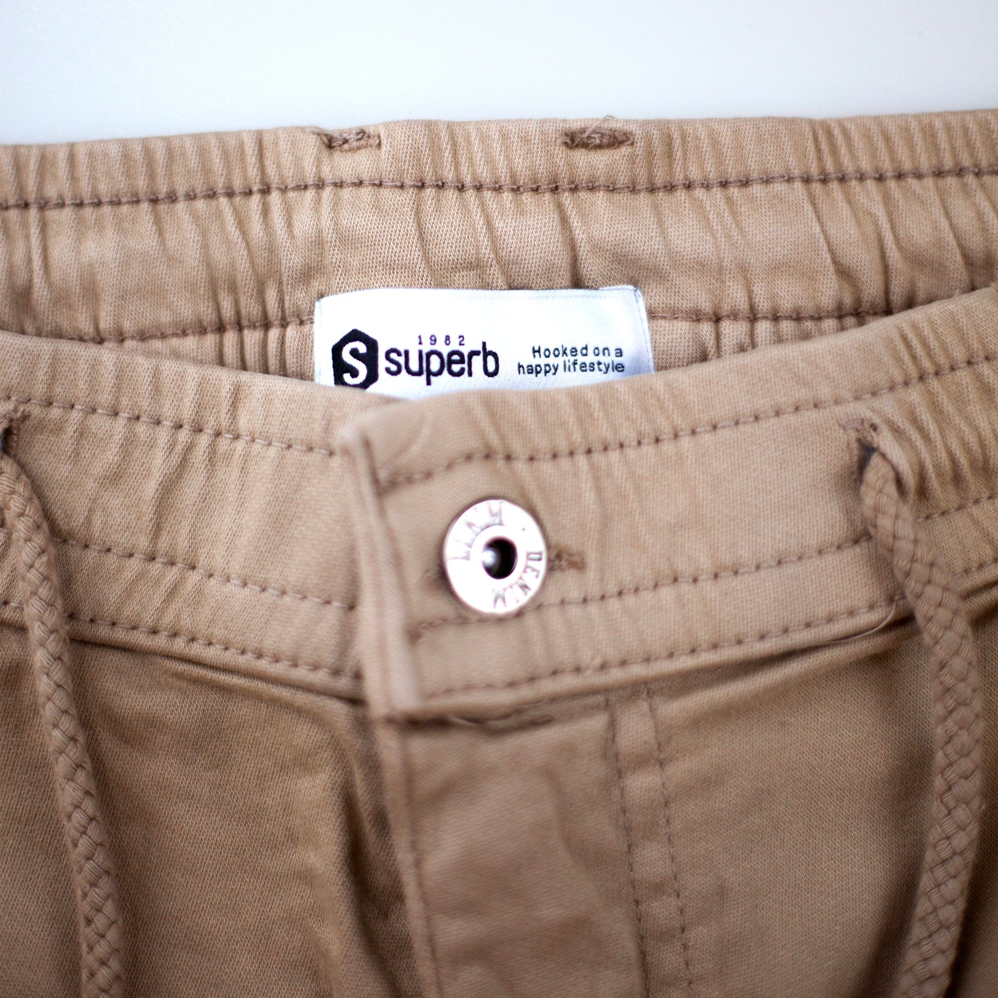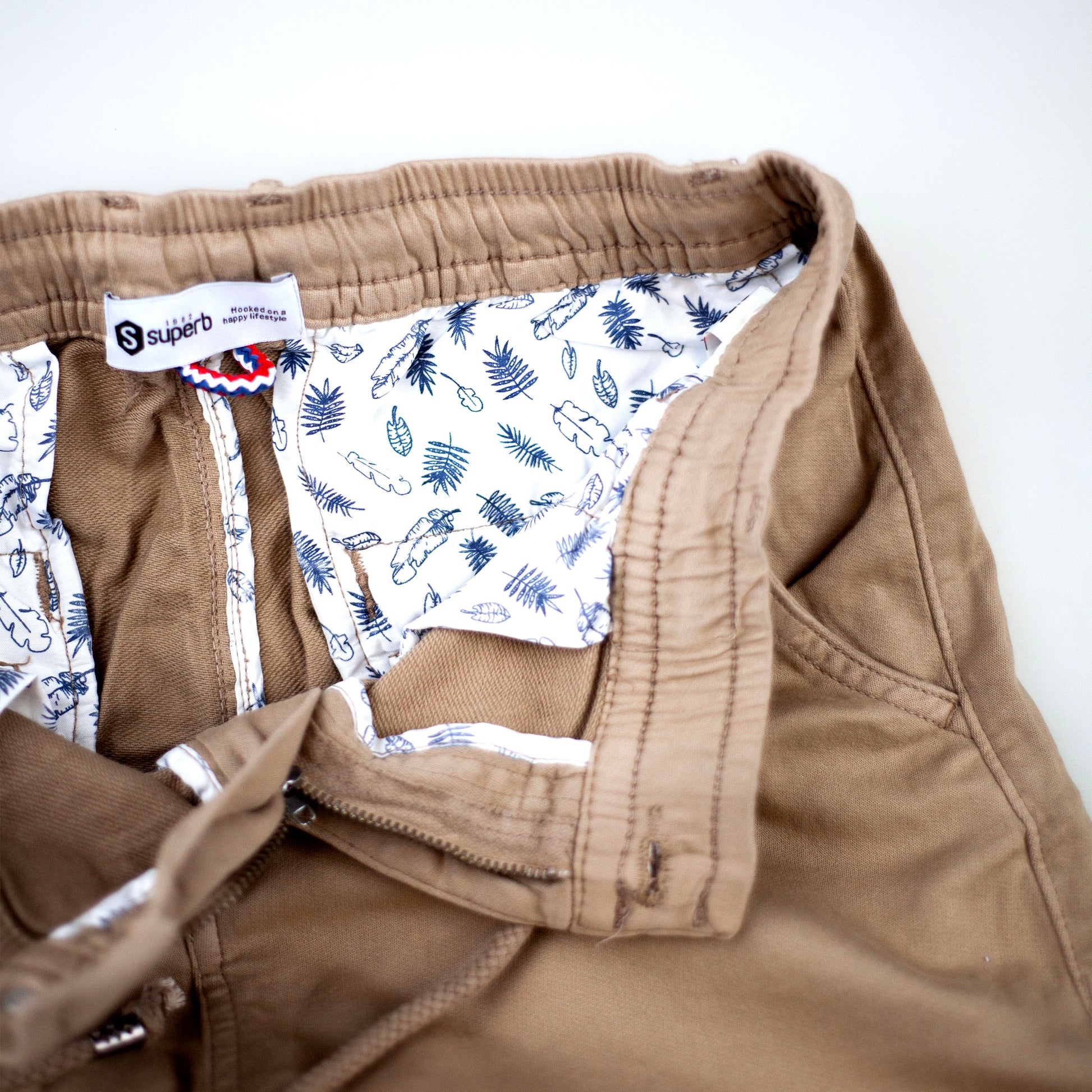 • Goma en la cintura con botón y cremallera