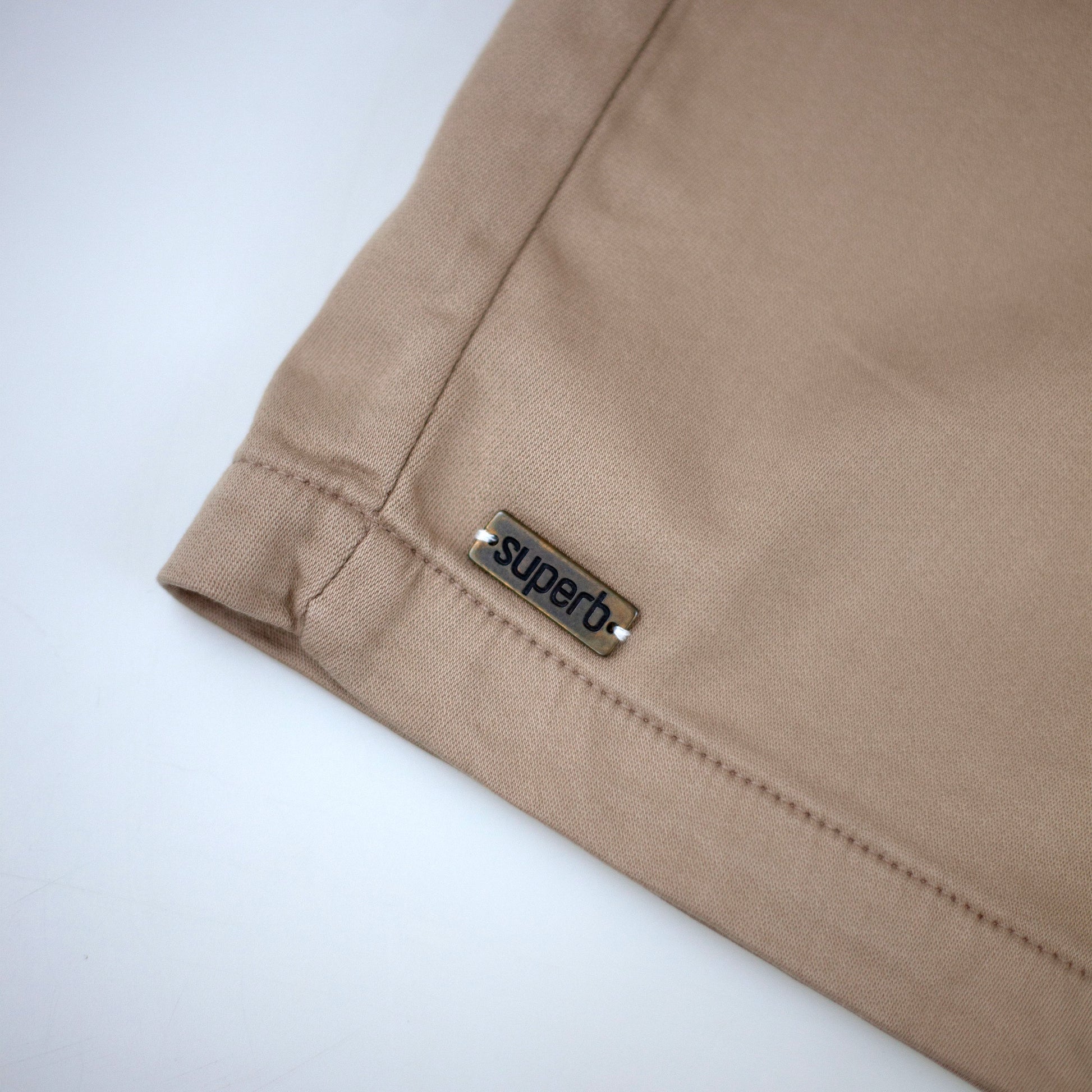 • Placa Superb cosida a mano en el bajo derecha